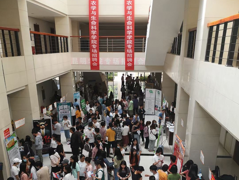 5月13日,由学校招生就业处主办,农学与生命科学学院承办的“昆明学院2021届农学与生物类专场招聘会”在学校行政楼D区一楼大厅举行。农学与生物科学学院2021届班主任及毕业生到场参会。