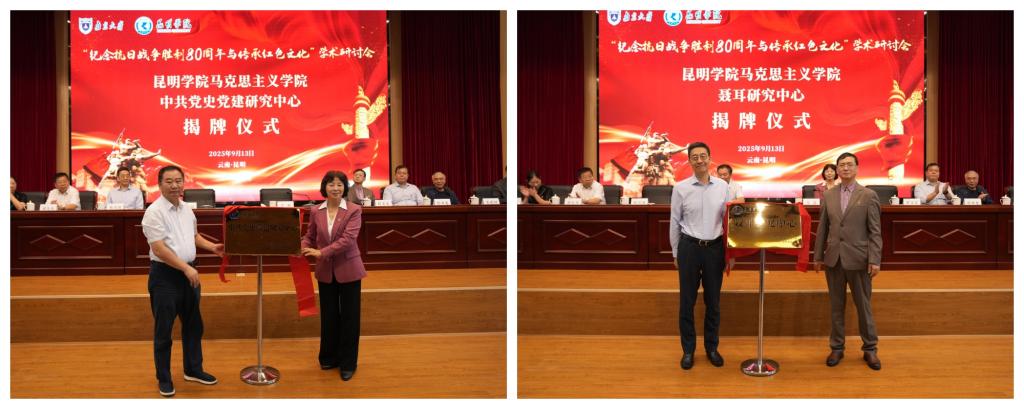 会上为“昆明学院马克思主义学院中共党史党建研究中心”和“昆明学院马克思主义学院聂耳研究中心”揭牌。