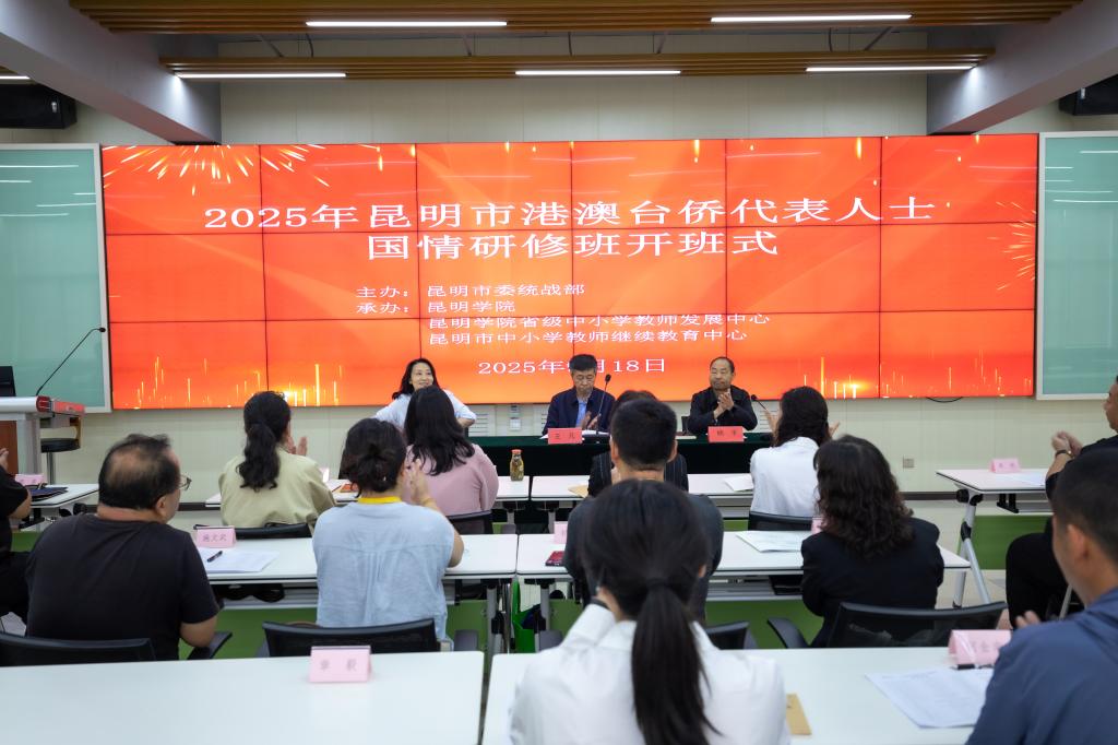 9月18日,由市委统战部主办、昆明学院承办的“2025年昆明市港澳台侨代表人士国情研修班”开班。市委统战部副部长张竞、学校党委委员、副校长王凡等领导出席开班式。40余名来自全市的港澳台侨代表人士及市台联、市侨联相关负责同志参加研修。