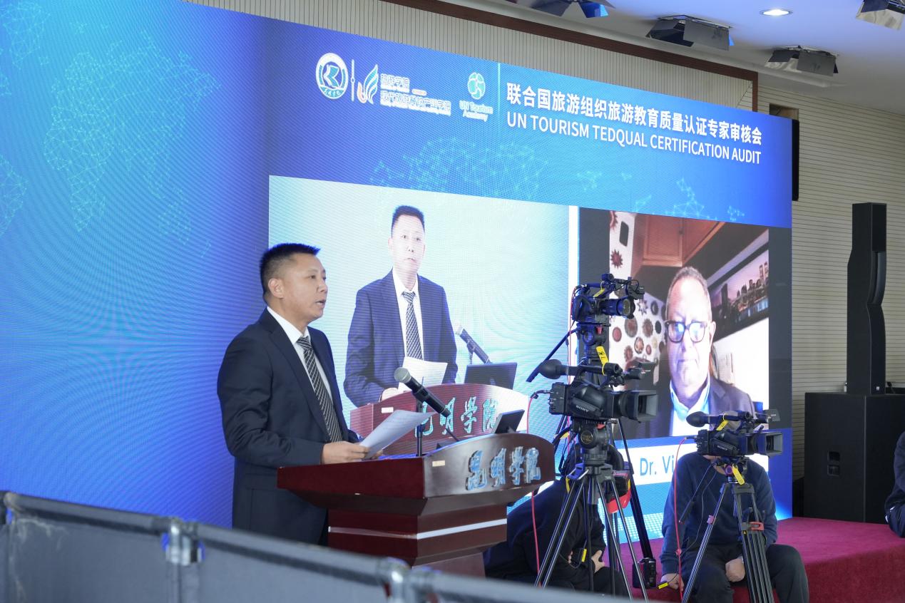 学校党委委员、副校长夏体渊致答谢辞,代表学校全体师生,认证专家维克多·查莱博士致以诚挚感谢。他表示,昆明学院将以此次审核为新起点,认真梳理专家反馈意见,逐项落实整改提升,持续优化人才培养模式,努力培养更多符合全球旅游产业发展需求的高素质应用型人才。同时,诚挚邀请查莱博士有机会能来昆明学院实地考察指导,也希望未来能与联合国世界旅游组织及各位专家保持密切交流,共同为推动旅游教育的国际化、专业化发展贡献力量!
