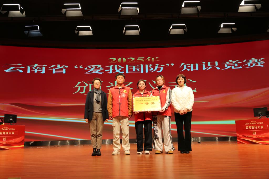 昆明学院代表队在党委副书记李莉的带领下,凭借扎实的知识储备与默契的团队协作,最终斩获一等奖,充分展现了昆院学子的国防素养与青春风采。