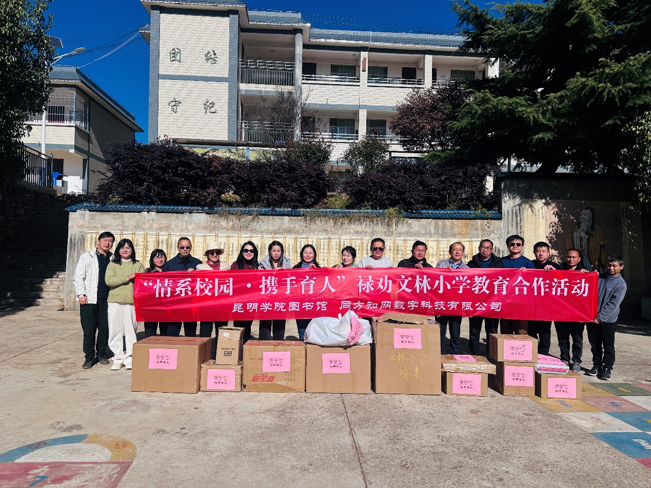 12月9日,学校图书馆联合北京人天书店集团股份有限公及同方知网数字科技有限公司于赴禄劝县九龙镇和文林村,开展“情系校园•爱心助学活动。
