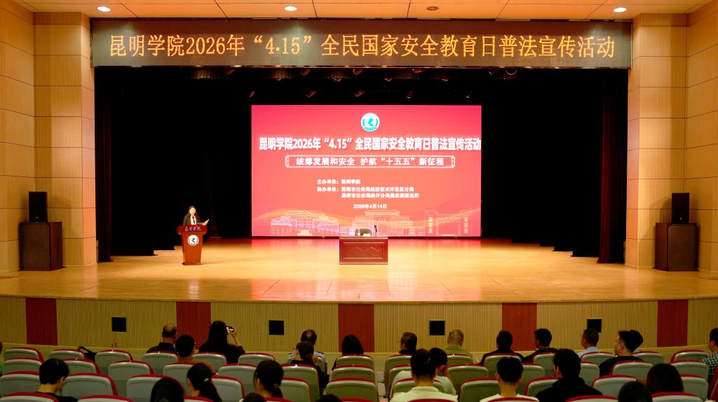 4月14日下午,昆明学院2026年“4·15”全民国家安全教育日普法宣传活动于学生会堂启动。本次活动由昆明学院主办,昆明市公安局经济技术开发区分局、昌宏路派出所协办。