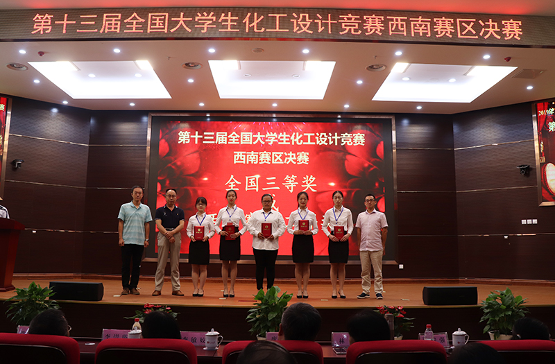 全国第十三届大学生化工设计竞赛西南赛区决赛在贵州大学举行,我校化学化工学院组织两支队伍参赛,2019年7月23日经过云贵高校初赛,两支队伍顺利进入西南赛区决赛并获奖。