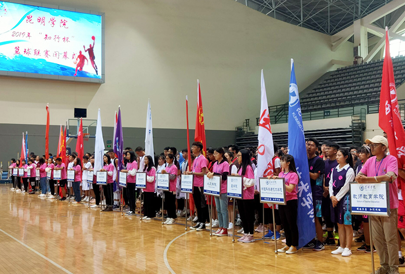 11月3日,昆明学院2019年知行杯篮球联赛在综合馆落下帷幕。共青团昆明学院委员会副书记沈嘉老师、郎易老师出席闭幕式并为获奖代表颁奖。学校18家学院球员代表200余人参加闭幕式。