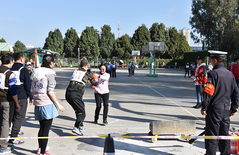 昆明学院2019年冬季运动会于11月14—16日在学校田径运动场隆重举行,消防比赛项目在运动会上开赛。18个院系分别组队参加了学生4×50米灭火器接力灭火、60米消防水带链接,各二级学院和机关教职工组成19支代表队参加了10×25米灭火器接力灭火比赛,共334名师生运动员参赛。