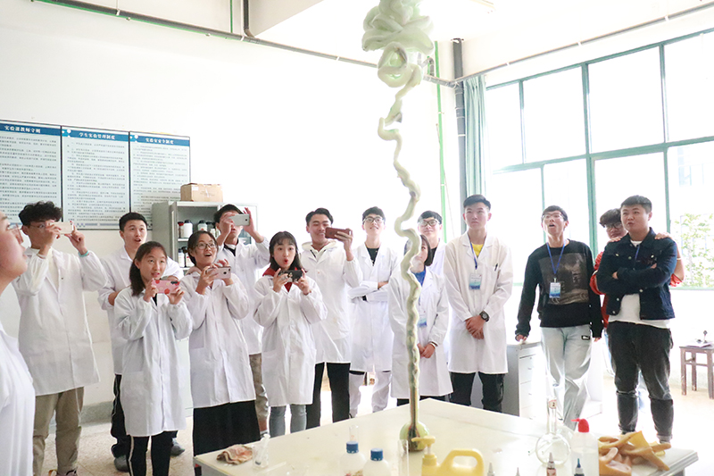 本次活动中,化学化工学院的同学用所学专业知识,为其他学院师生讲解趣味化学知识,让师生们看到化学试剂间相互产生的神奇火花,让更多的人体会到学习化学的乐趣,感受到化学的魅力。