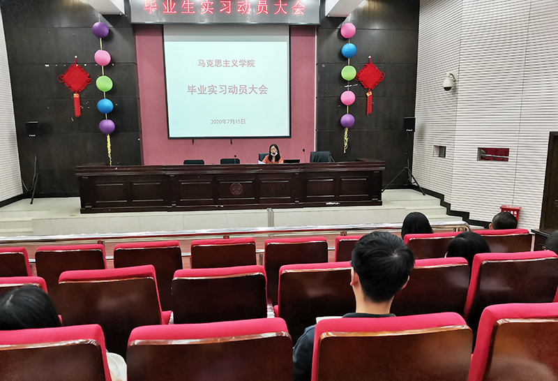 715日,马克思主义学院召开了毕业生实习动员大会。学院党政领导、教研室主任、毕业班班主任及相关老师出席,思想政治教育专业2021届全体毕业生参加了会议。