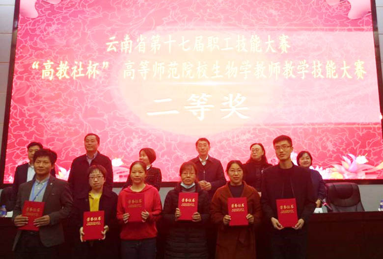 1021-23日,云南省第十七届职工职业技能大赛——高教社杯高等师范院校生物学教师教学技能大赛在云南师范大学举行。农学与生命科学学院侯秀丽老师荣获二等奖及“云南省高等师范院校生物教师教学技术能手”称号,张悦、曹艳茹两位老师获三等奖,学校获优秀组织奖