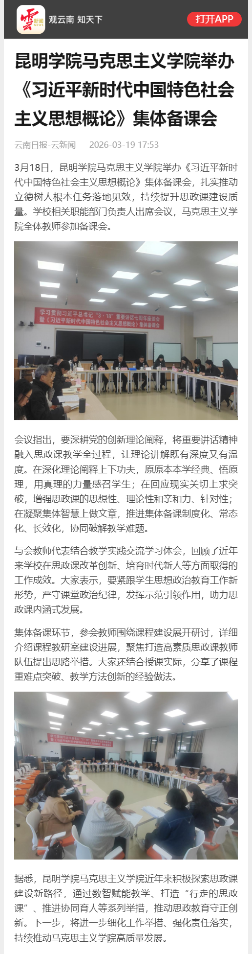 昆明学院马克思主义学院举办《习近平新时代中国特色社会主义思想概论》集体备课会