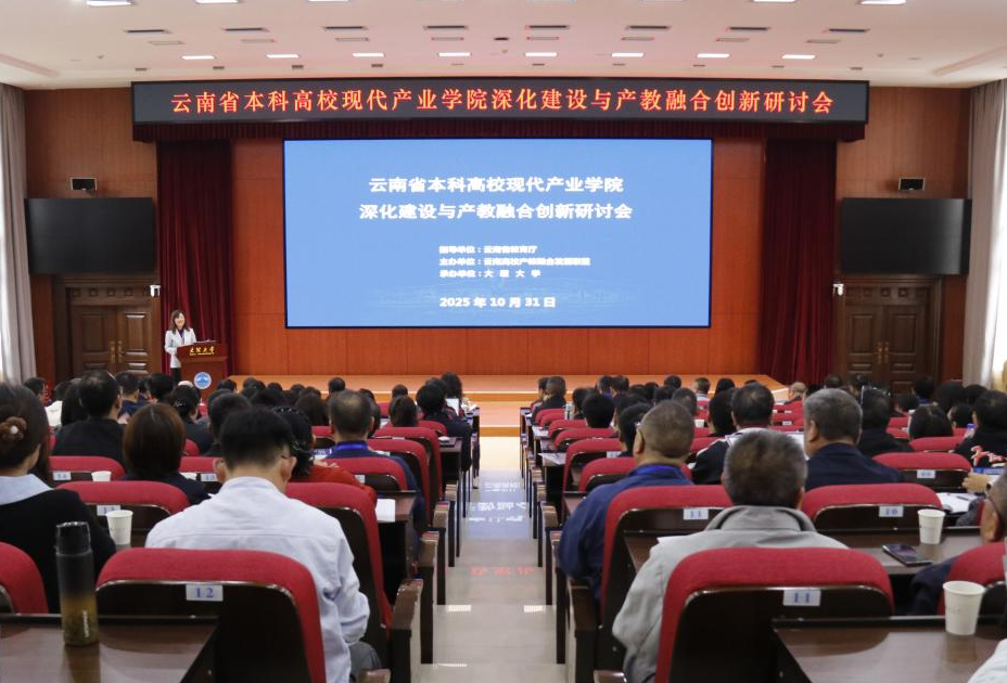 10月31日,由云南省教育厅指导、云南高校产教融合发展联盟主办、大理大学承办的云南省本科高校现代产业学院深化建设与产教融合创新研讨会召开。云南省教育厅、省工业和信息化厅有关部门负责同志,有关本科高校负责同志及教务处负责人,国家级与省级现代产业学院、专业特色学院负责人,有关行业企业代表出席会议。