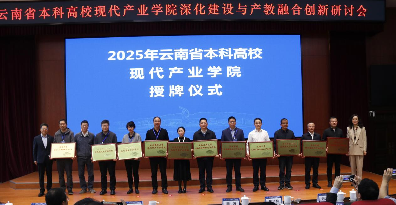 昆明学院作为联盟理事长单位牵头组织本次会议,大理大学党委书记李涛出席会议并致辞,云南高校产教融合发展联盟秘书处负责同志、昆明学院党委委员、副校长邓瑶主持开幕式及2025年省级现代产业学院、省级专业特色学院授牌仪式。