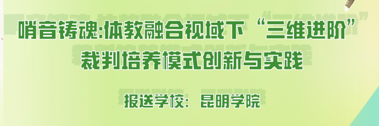 我校体育学院魏文婷老师主持申报的典型案例《哨音铸魂:体教融合视域下“三维进阶”裁判培养模式创新与实践》,经省级专家评审后推荐报送教育部,最终从全国众多优秀作品中脱颖而出,成功入选全国集中展示的50个典型案例名单,并在“人民网+”客户端、人民日报少年客户端等官方主流媒体平台进行展播。
