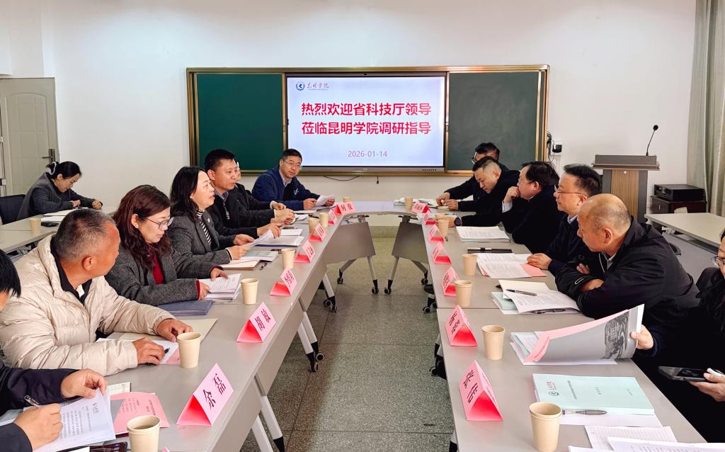 1月14日下午,云南省科技厅党组书记、厅长高俊带队到校调研座谈。学校党委副书记、校长丁文丽,党委委员、副校长夏体渊陪同调研并参加座谈交流。